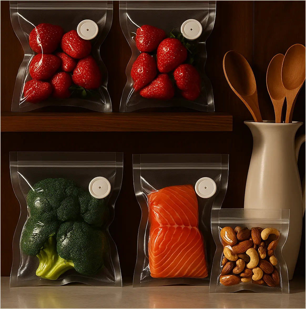 Yes — by removing air through our Patented Valve Technology, the bags create an airtight seal that helps block the growth of bacteria, mould, and yeast. This slows down spoilage, keeps food fresher for longer, and preserves flavor and nutrients. While vacuum sealing greatly reduces the risk of bacteria and mould, we always recommend storing sealed food in the fridge, freezer, or pantry according to safe food handling guidelines.